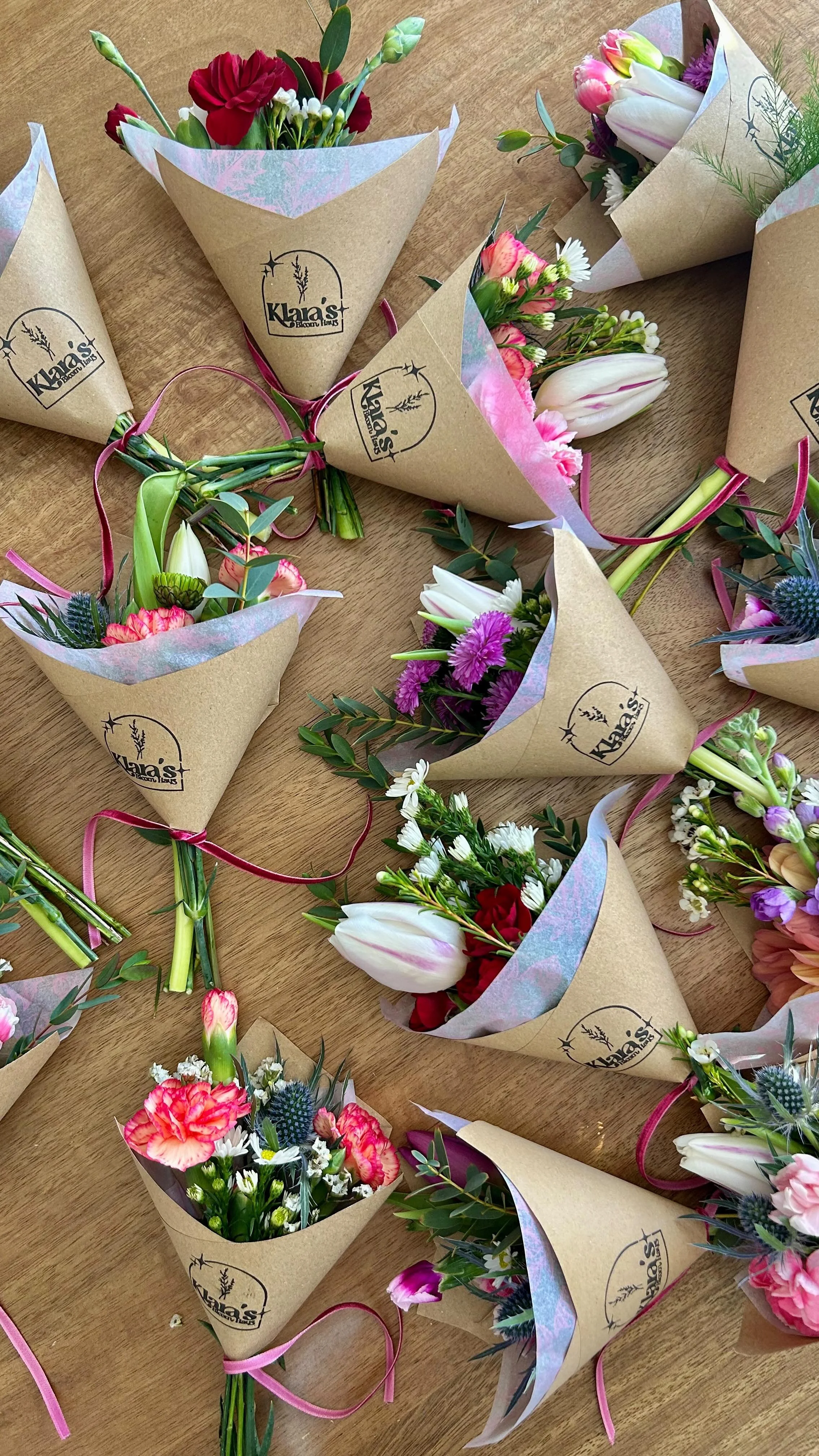 Klara’s Bloom Haus brings the joy of flowers to your celebration—literally. Our mobile flower cart rolls into your event fully styled and bloom-ready, so your guests can build bouquets, grab pre-made bundles, or admire custom arrangements designed just for your day. From romantic centerpieces that anchor your tables to playful, take-home blooms, every detail is personal, whimsical, and picture-perfect.